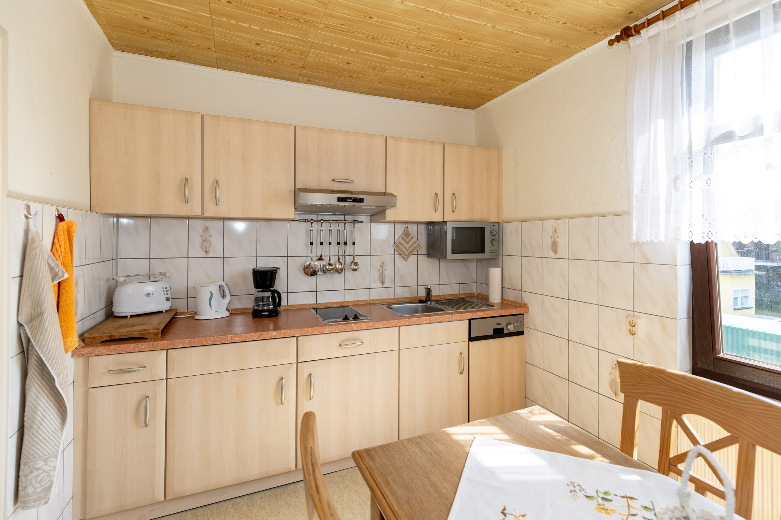 Hier finden bis zu vier Personen ihr perfektes Urlaubsdomizil: Ein behagliches Schlafzimmer mit Doppelbett sowie ein zweites, über eine Schiebetür verbundenes Schlafzimmer mit zwei Einzelbetten bieten ideale Rückzugsorte für Familien oder Freunde. Die gut ausgestattete Küche lädt zum gemeinsamen Kochen und Genießen ein, während das geräumige Bad für zusätzlichen Komfort sorgt.